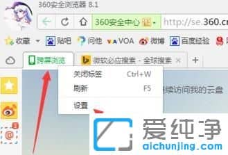 第一步:打开360浏览器,可以看到第一个选项卡显示“跨屏浏览”;