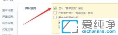 第四步:找到“跨屏浏览”,取消勾选“显示‘跨屏浏览’按钮”;
