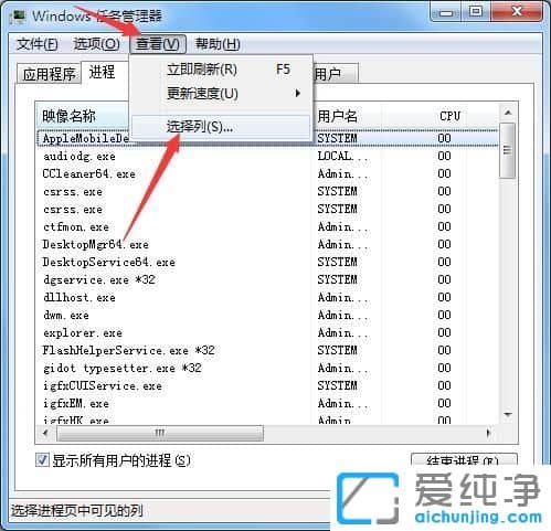 第三步:接下来,展开“查看”菜单栏,选择“选择列”选项;