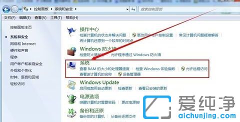 第五步:然后我们在打开的控制面板上找到系统和安全这个项目,然后展开之后我们再次选择里面的查看ram的大小和处理器速度。
